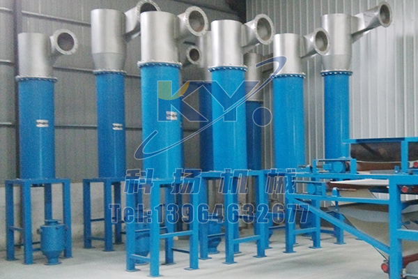 该除渣器由上下两个锥形部组成,纸浆在高压下由上部进浆口沿切线方向进入除渣器,沿锥体作螺旋运动形成涡旋,纸浆中的重杂质在离心力及自身重力的作用下,被分离出并沿着锥形内壁从上锥形部向下锥形部下降,良浆由涡旋产生的中心负压区上行从顶部的出浆口排出;重杂质及部分纤维下沉至下锥体,下锥部装有压力进水管,通入压力水,在冲洗水作用下进行反冲洗涤进一步稀释浆渣,使纤维与杂质分离,并且纤维上浮,重杂质经下锥体出渣口下沉至沉渣桶内。沉渣桶上设有给水口及视窗,供清洗、观察,以便及时排渣。